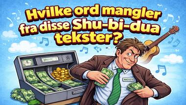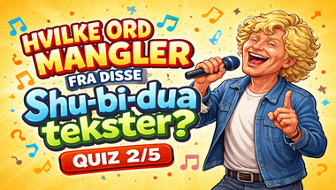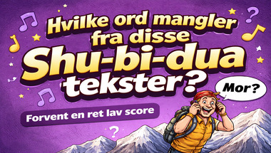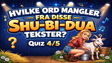 I denne sjove quiz vi kommer til at stille spørgsmål som "Hvilket ord mangler i Shu-bi-duas sang "Midsommersangen": "Men den skønneste krans b.." og "Hvilket ord mangler i Shu-bi-duas sang "Vuffeli-Vov": "Du ka' få kvinder og kager og..".